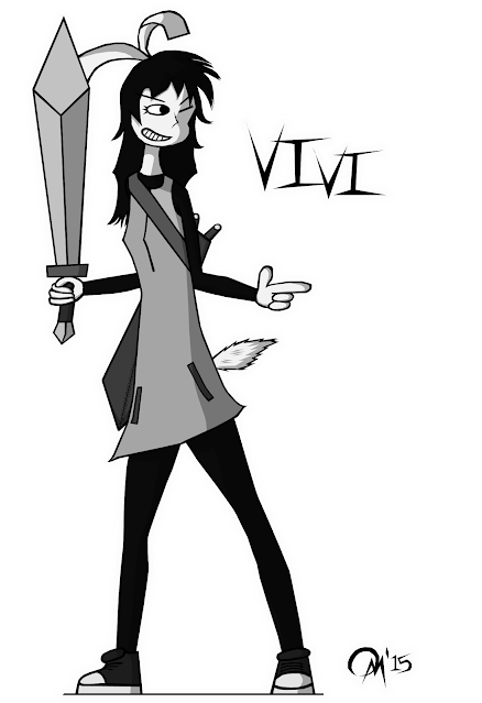 It also stems my questioning: If she is a rabbit, why does she still looked human? I mean, take off the ears & tail, and what you have is a pale-skinned girl. In May 2020, I got to work on a total redesign. Her colors aren't monochrome, her facial features are more rabbit like, and even her own sword doesn't look too generic. One more thing I ditched was her outfit, which is like a dress of sorts. She wears a more casual looking outfit with hiking boots.